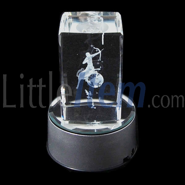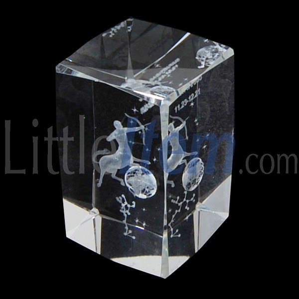 3D laser etched Sagittarius symbol inside the crystal block