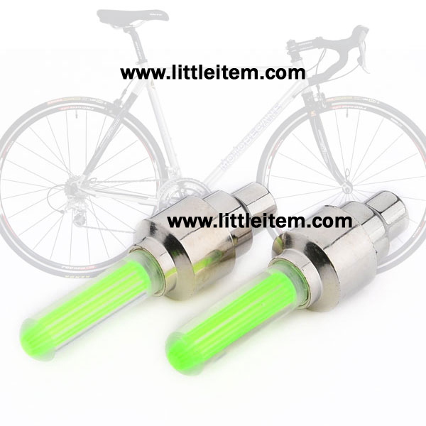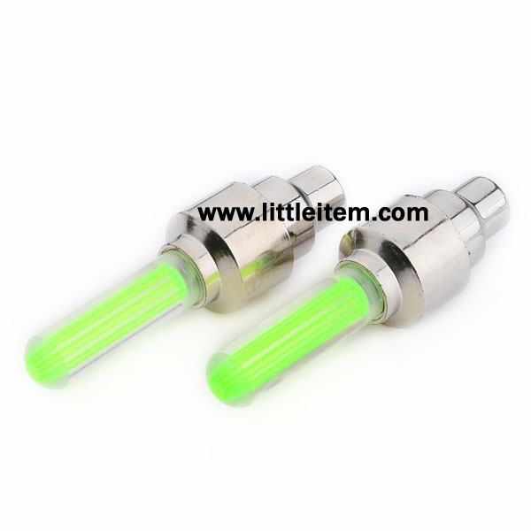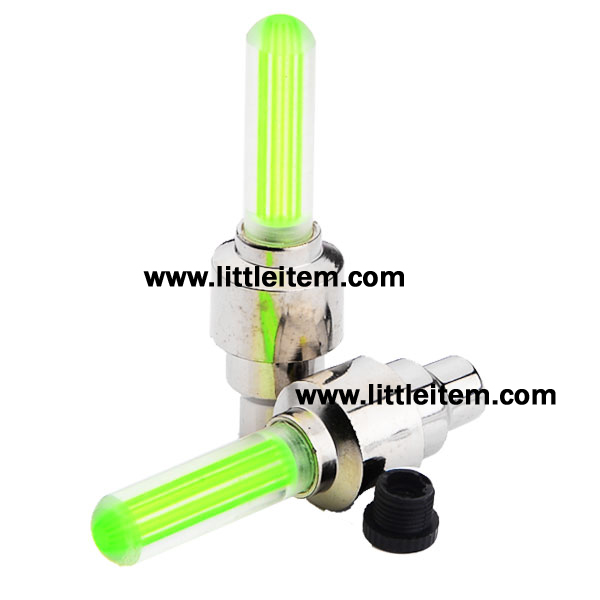4 Green LED Flash Wheel Tire Valve Sealing Cap for Bicycle / Car / Motorcycle (4 valves – 2 x pack of 2)